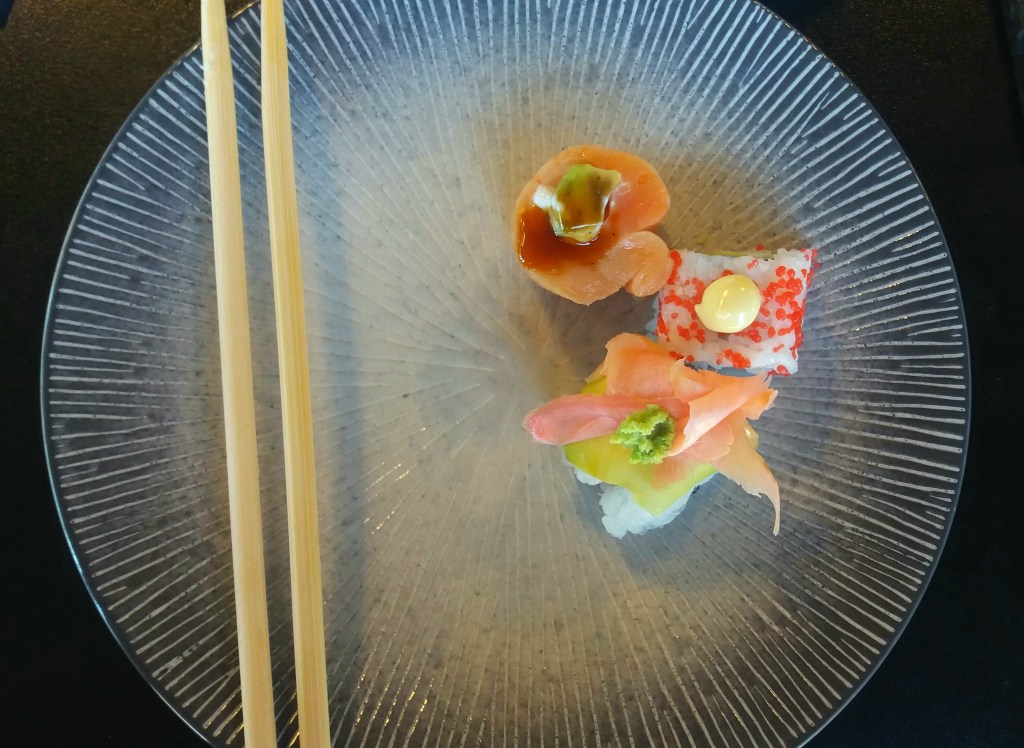 The corner café is always a charming place to eat at and it so happens that the sushi place is now open which I was eager to try out. Once you walk in you have the option to sit at the sushi bar upstairs where you have the conveyor belt and you get to watch the man as he makes your sushi which cheered me up tremendously.The sushi was delicious and was enjoyed very much but I will order some miso soup as well next time. Afterwards went downstairs for dessert where they have some of the lightest, fluffiest cakes you will ever eat washed down by some tea.