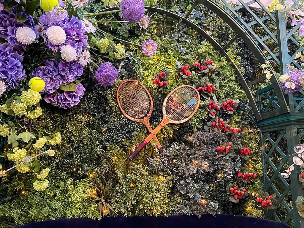 It was a fun experience and buzz where the drinks were chilled well as it was hot outside, on offer was a specially tailored mix of cocktails and afternoon tea in line with the theme of Wimbledon which we all enjoy in the summer. They had a gorgeous and beautiful arrangement of indoor hydrangeas, allium, viburnum, and daisy garden with some tennis balls inserted here and there which all played well with the theme.